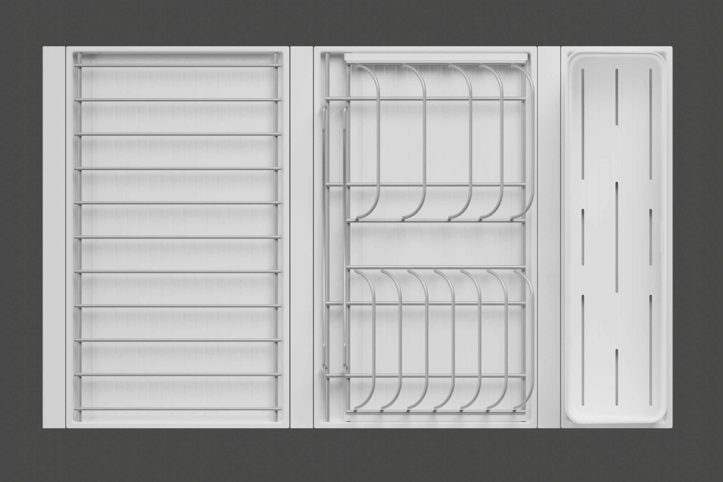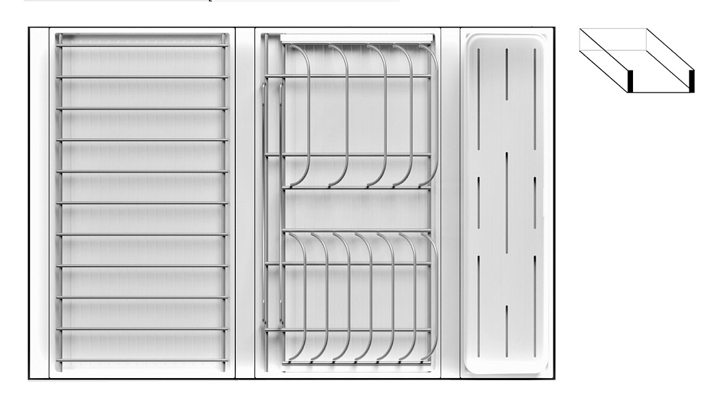Модель — 1 большой модуль для посуды + 1 большой модуль с решеткой + модуль для столовых приборов