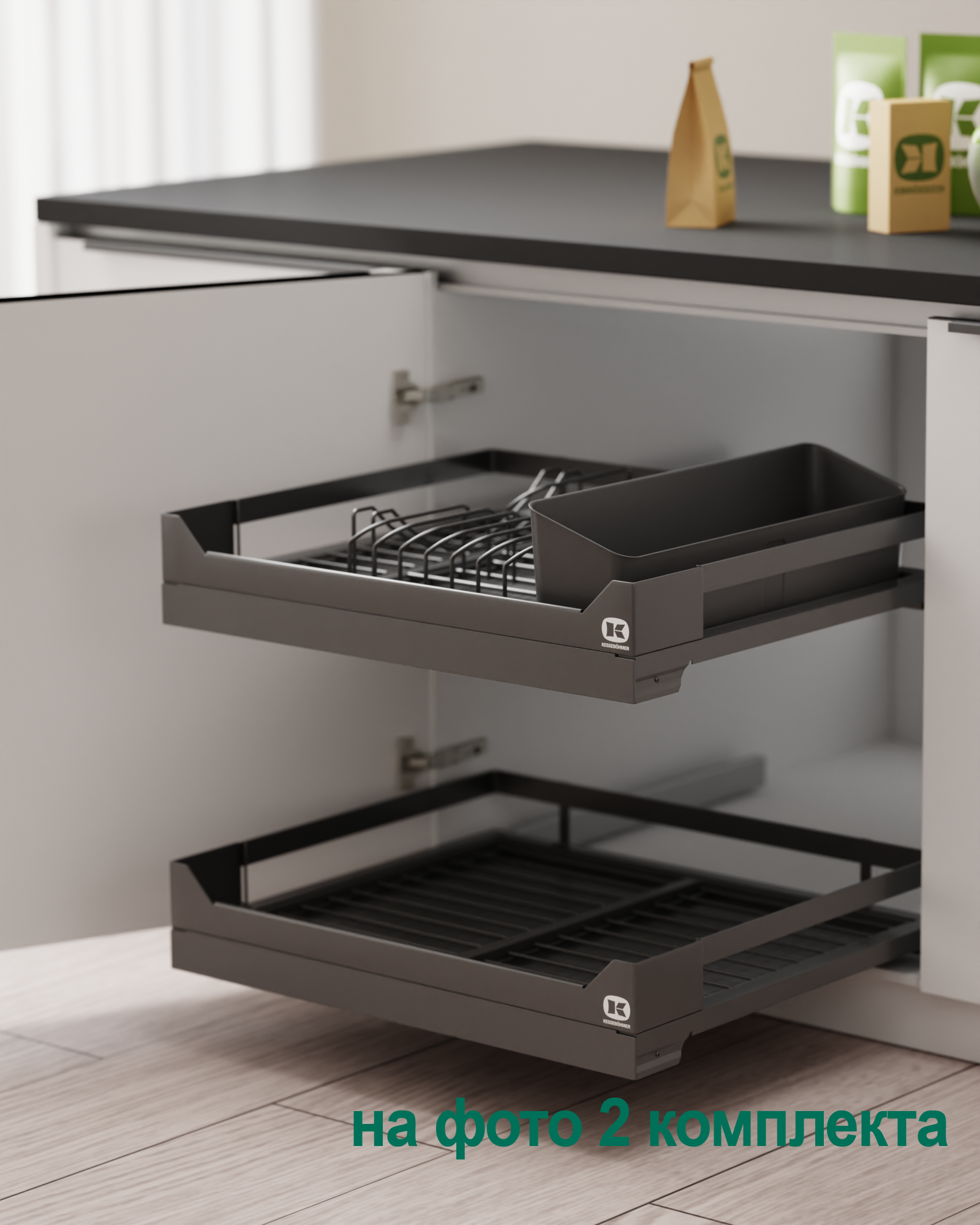 1 для посуды большой (423 x 248 мм, состоит из 1 х держатель металлический, 1 х поддон пластиковый, 2 х защелка-ограничитель)