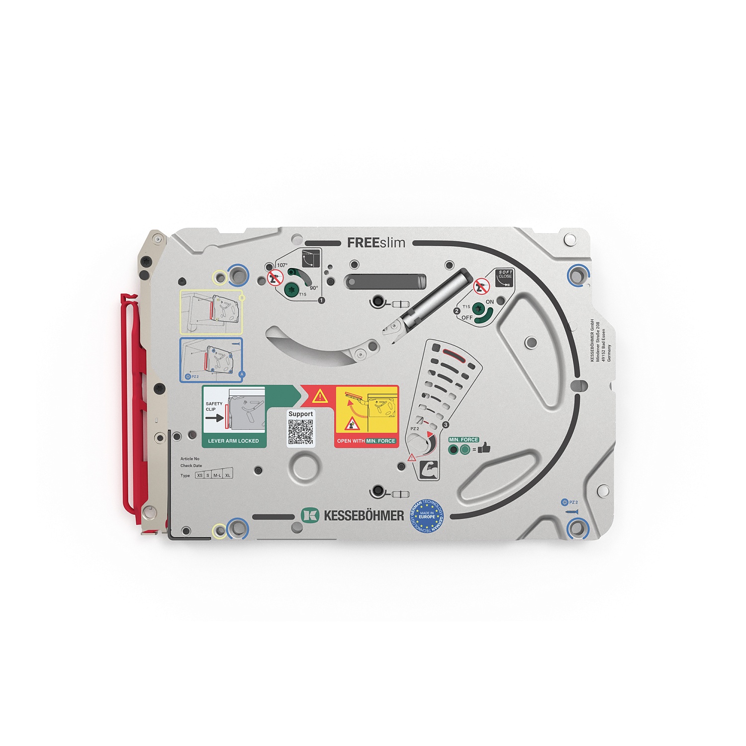 Полный комплект ультратонкого подъемного механизма ФриСлим ФЛАП Kesseböhmer с доводчиком для накладного монтажа, цвет БЕЛЫЙ