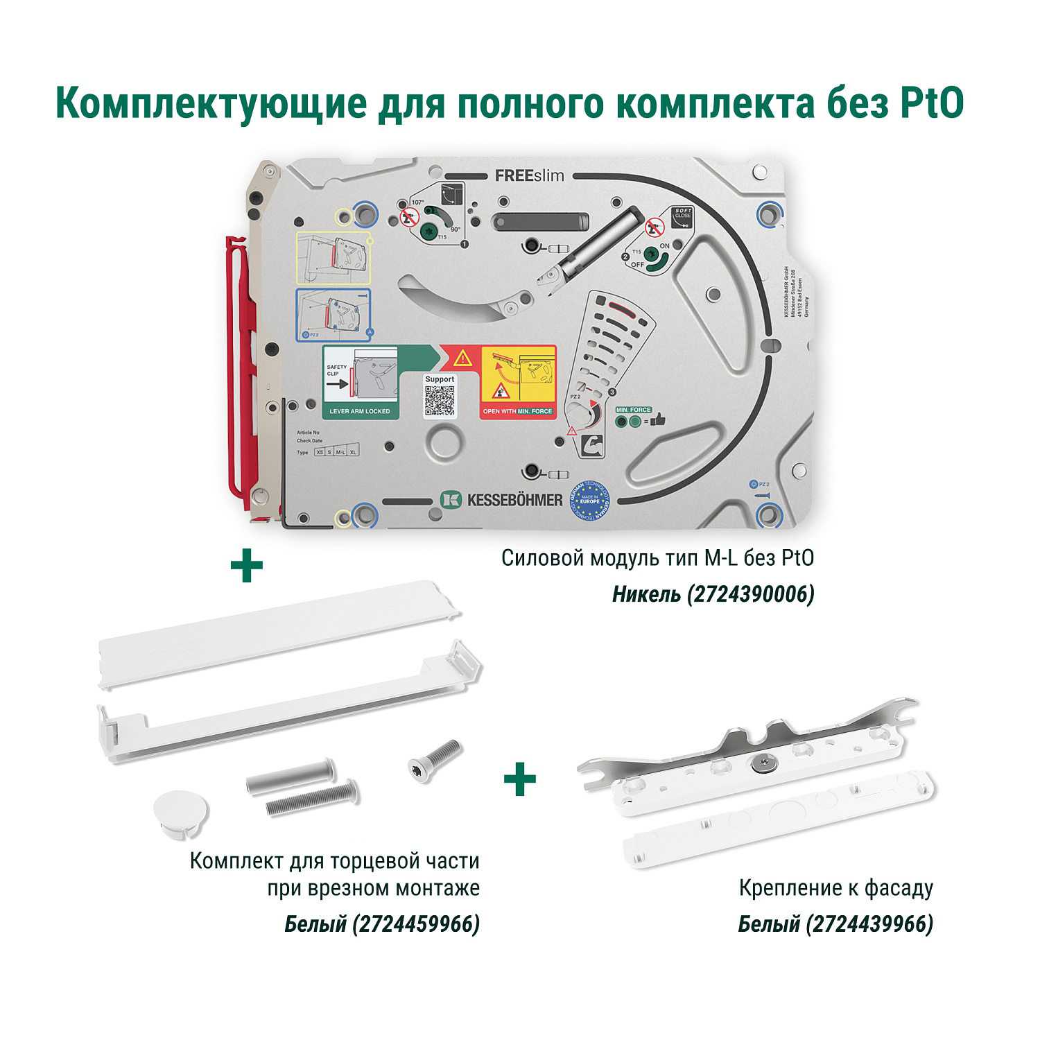 Полный комплект подъемного механизма ФриСлим ФЛАП с доводчиком для врезного монтажа, цвет БЕЛЫЙ Kessebohmer | официальный магазин