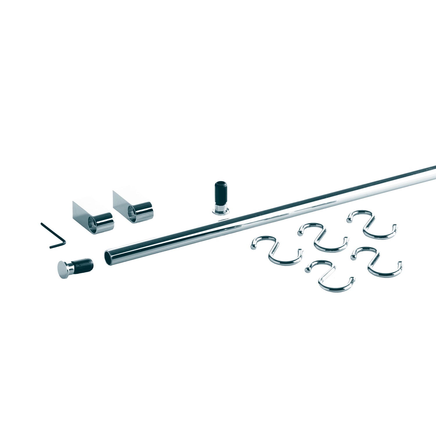 Рейлинг 1200 мм, Линеро, Комплект: труба 1200, 2 заглушки, 2 держателя, 5 крючков, цвет ХРОМ глянцевый (0180380005)