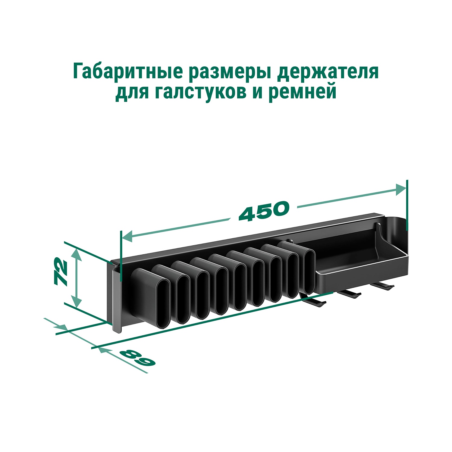Держатель для галстуков и ремней с полочкой фасадный 450 мм Конеро D 475 мм цвет ЧЕРНЫЙ Kessebohmer | официальный магазин