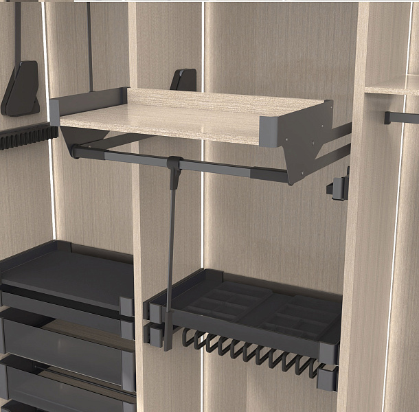 Пантограф с полкой в гардеробную Конеро W 985-1168 мм цвет ЧЕРНЫЙ Kessebohmer | официальный магазин
